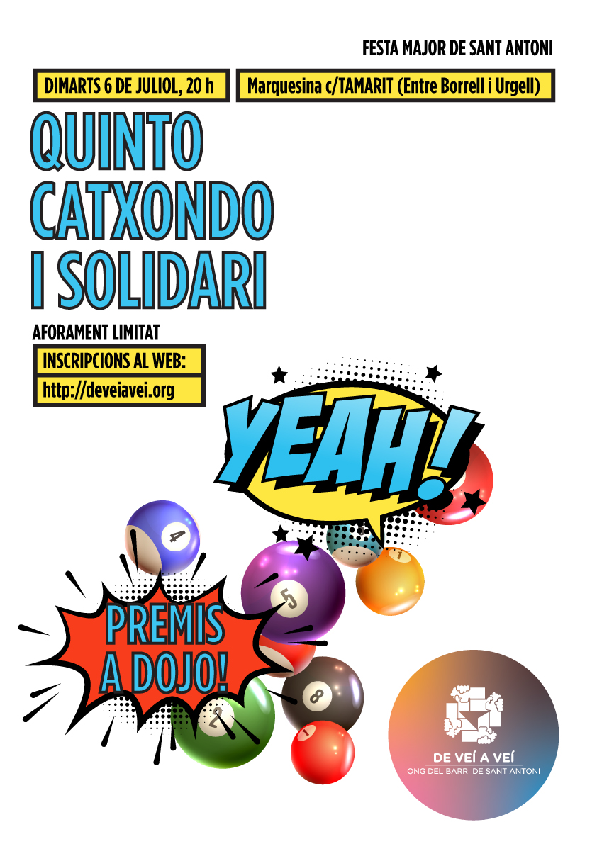 Aquest any és la 3a  edició que la ONG DE VEÍ A VEÍ del barri de Sant Antoni n’organitza un coincidint amb la Festa Major (excepcionalment celebrada al juliol) amb l’objectiu de recollir diners per els seus projectes. Prometem unes horetes de diversió i molts premis (donats pels comerços i entitats del barri).